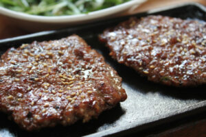 Tteokbokki (Korean: 떡볶이), or simmered rice cake, is a popular Korean food made from small-sized garae-tteok (long, white, cylinder-shaped rice cakes) called tteokmyeon (떡면; "rice cake noodles") or commonly tteokbokki-tteok (떡볶이 떡; "tteokbokki rice cakes"). Eomuk (fish cakes), boiled eggs, and scallions are some common ingredients paired with tteokbokki in dishes. It can be seasoned with either spicy gochujang (chili paste) or non-spicy ganjang (soy sauce)-based sauce; the former is the most common form, while the latter is less common and sometimes called gungjung-tteokbokki (royal court tteokbokki).